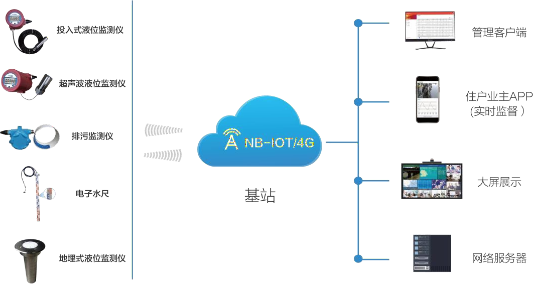 液位監測站主機常采用4G/NB-IoT等通信方式,與管理中心站進行數據通信。